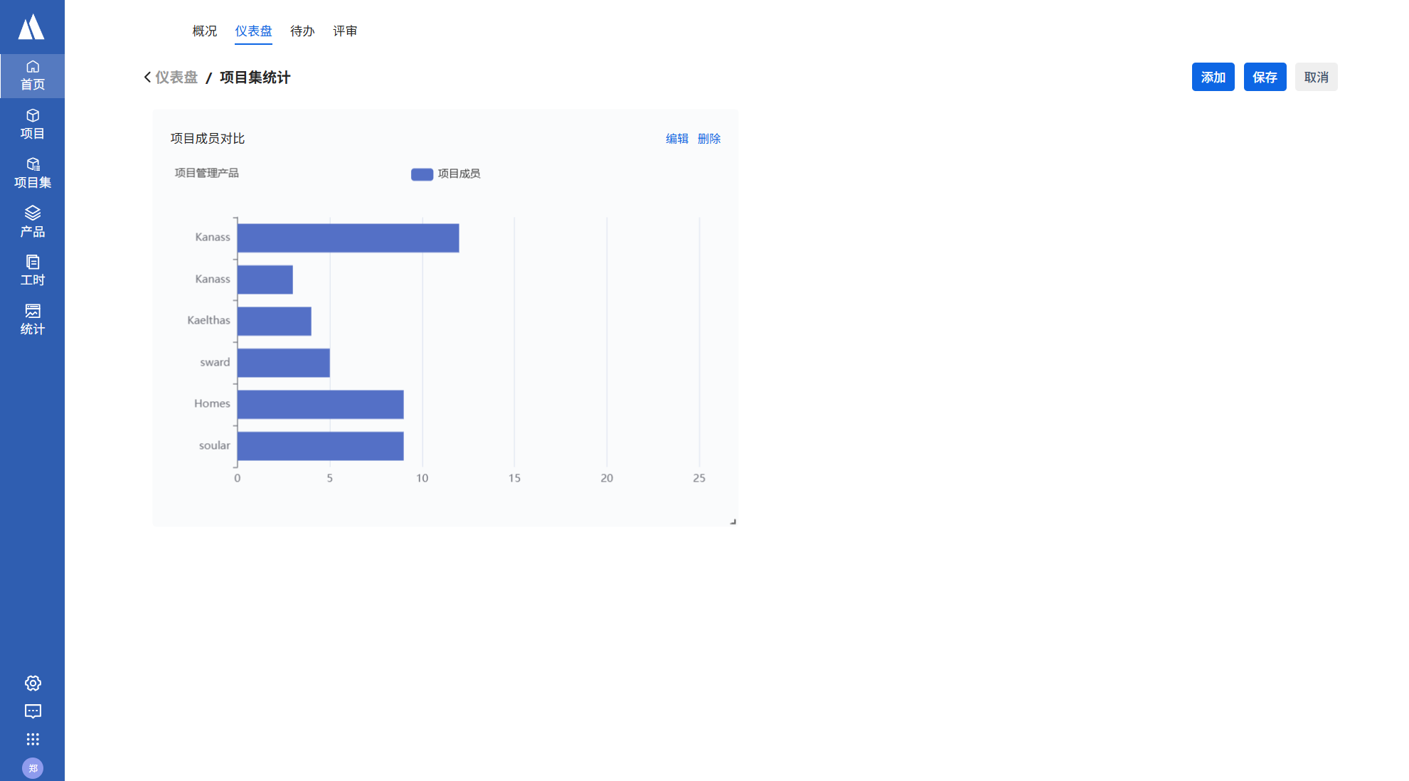 - 以柱状图的形式对比项目集内各项目的成员个数
