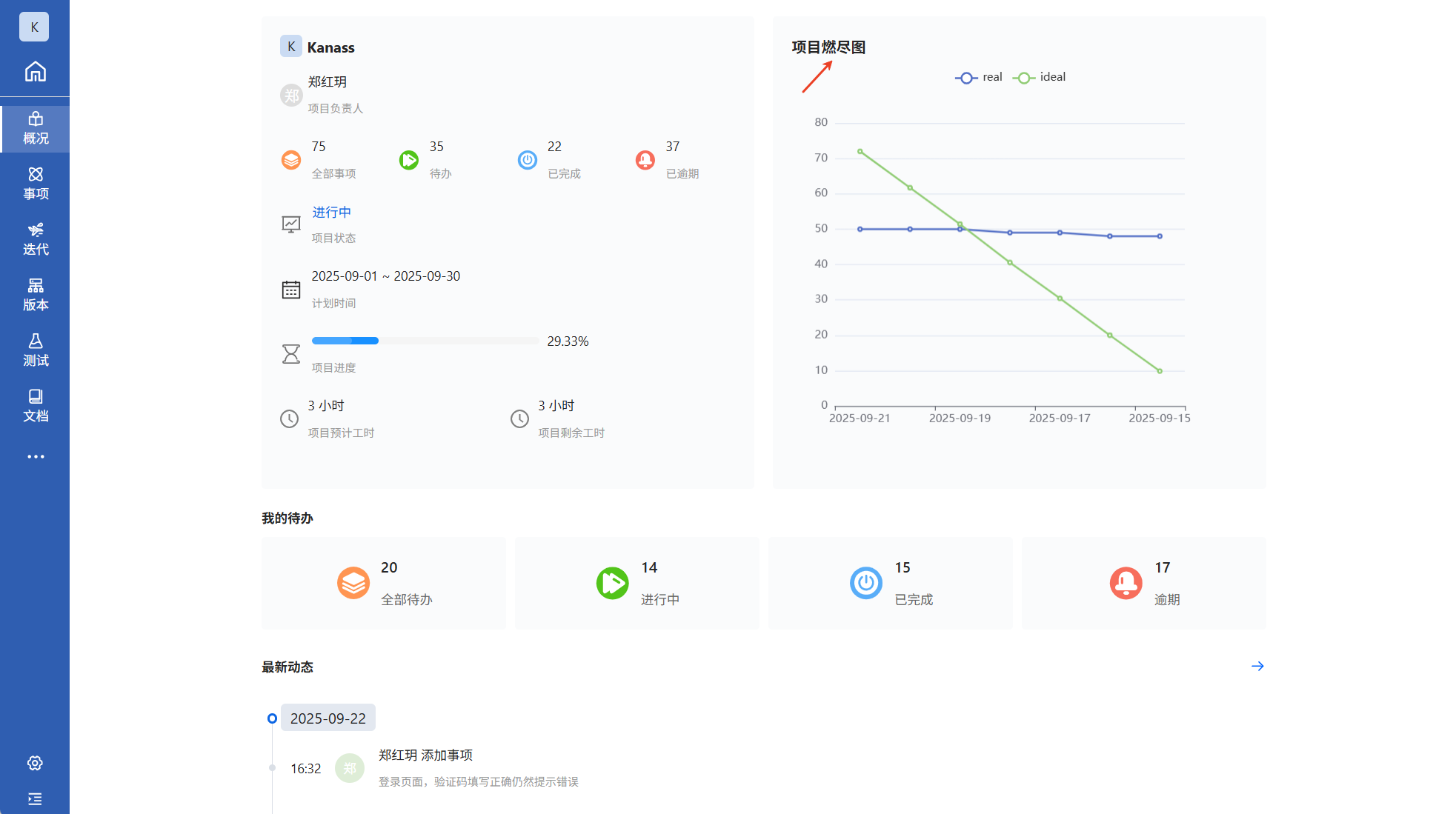 kanass是一款国产开源免费、简洁易用的项目管理工具。不仅具有项目、项目集、迭代、事项等管理功能,还有丰富的图表,用不同的维度展示数据,直观的看出项目等模块进度。