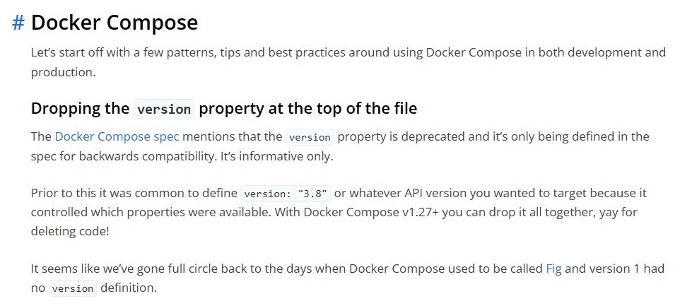 Docker Compose 规范已明确 version 属性「已弃用」。