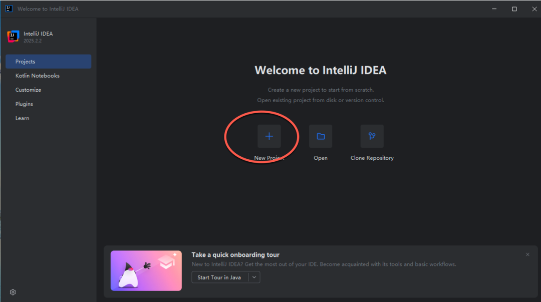 打开 IDEA,新建项目:在欢迎界面点击 New Project。