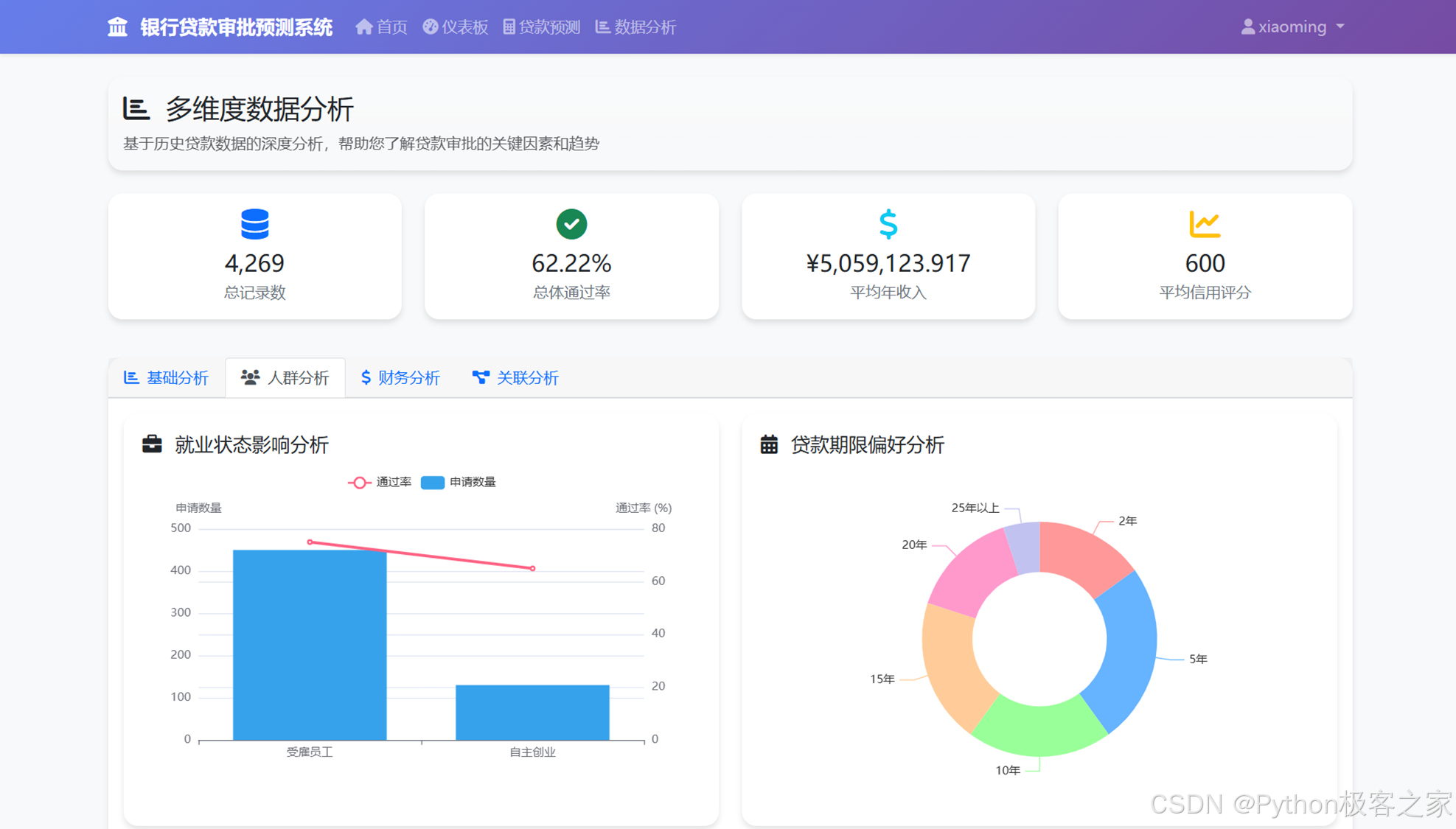 随着信息技术的发展,银行业务的数据量呈现爆炸式增长。如何从海量数据中提取有价值的信息,成为了金融机构提高竞争力的关键。特别是在贷款审批这一领域,准确的风险评估和高效的审批流程对于降低坏账率、提升客户满意度至关重要。基于数据挖掘的银行贷款审批预测系统旨在通过先进的数据分析技术优化贷款审批过程。