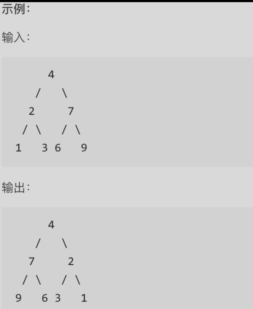 class Solution{//前后序遍历都可以// 中序不行,因为先左孩子交换孩子,再根交换孩子(做完后,右孩子已经变成了原来的左孩子),再右孩子交换孩子(此时其实是对原来的左孩子做交换)public TreeNode invertTree(TreeHode root){if(root == null){return null;}invertTree(root.left);invertTree(root.right);swapChildren(root);return root;}public void swapChildren(TreeNode root){TreeNode temp = root.left;root.left = root.right;root.right = temp;}