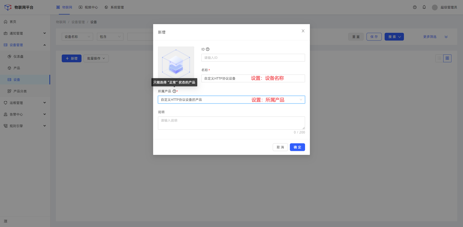 标签:统一为设备添加拓展字段,添加后将在设备信息页显示。