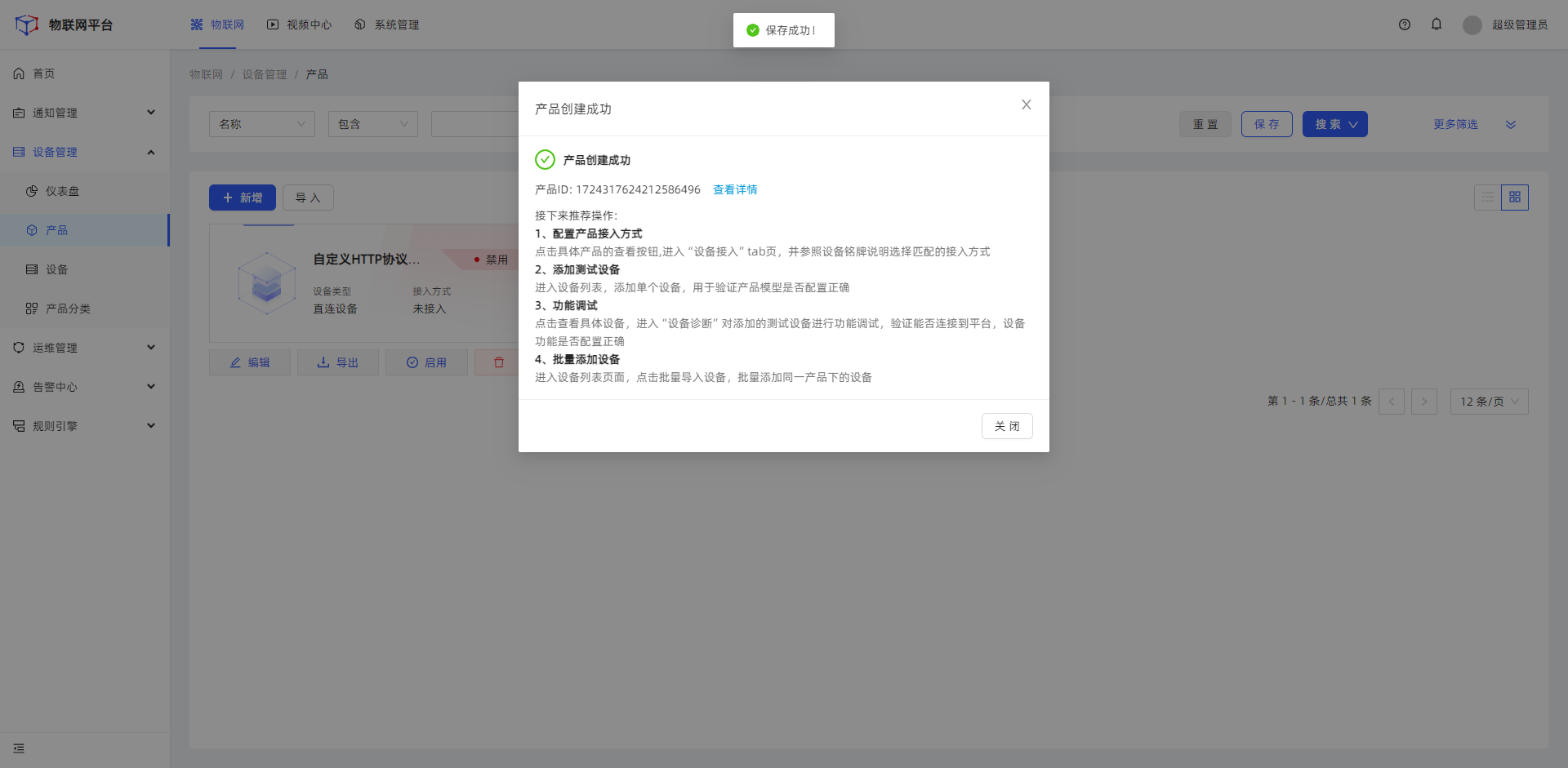 应用开发层:提供RESTAPI和WebSocket接口,支持前端对接和自定义应用开发。同时还提供了可视化的数据展示和操作页面,方便用户快速搭建物联网应用系统。