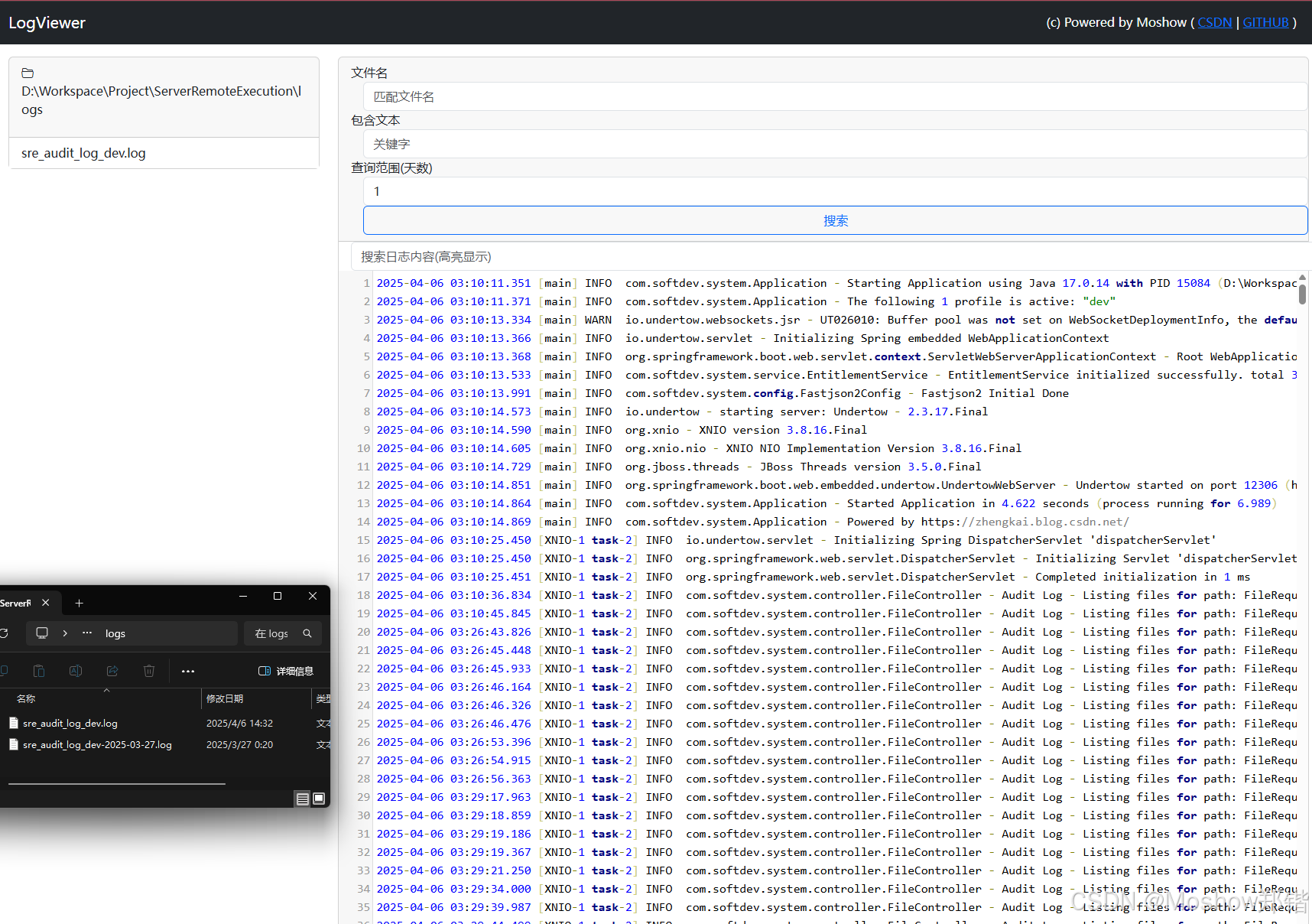 它是基于SpringBoot3+jPowershell的轻量级工具,不用装数据库,解压启动就能用 —— 支持 PowerShell 白名单命令、10M 内日志高亮搜索、文件浏览下载,帮 Java 开发者 / 运维快速搞定 Windows 服务器远程管理。