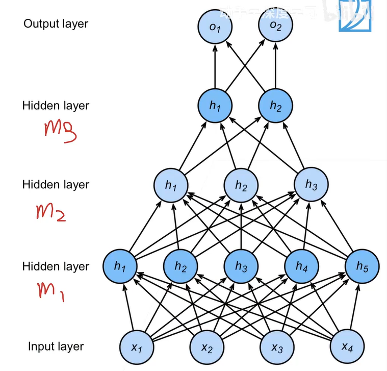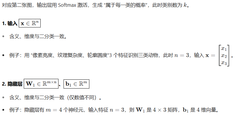 理解:多维数据输入,数据结果为类别则相较输入的维度数量较少,一般来说需要慢慢压缩维度,既使用多隐藏层;类似于右边网络变(大,小,小,不变)。