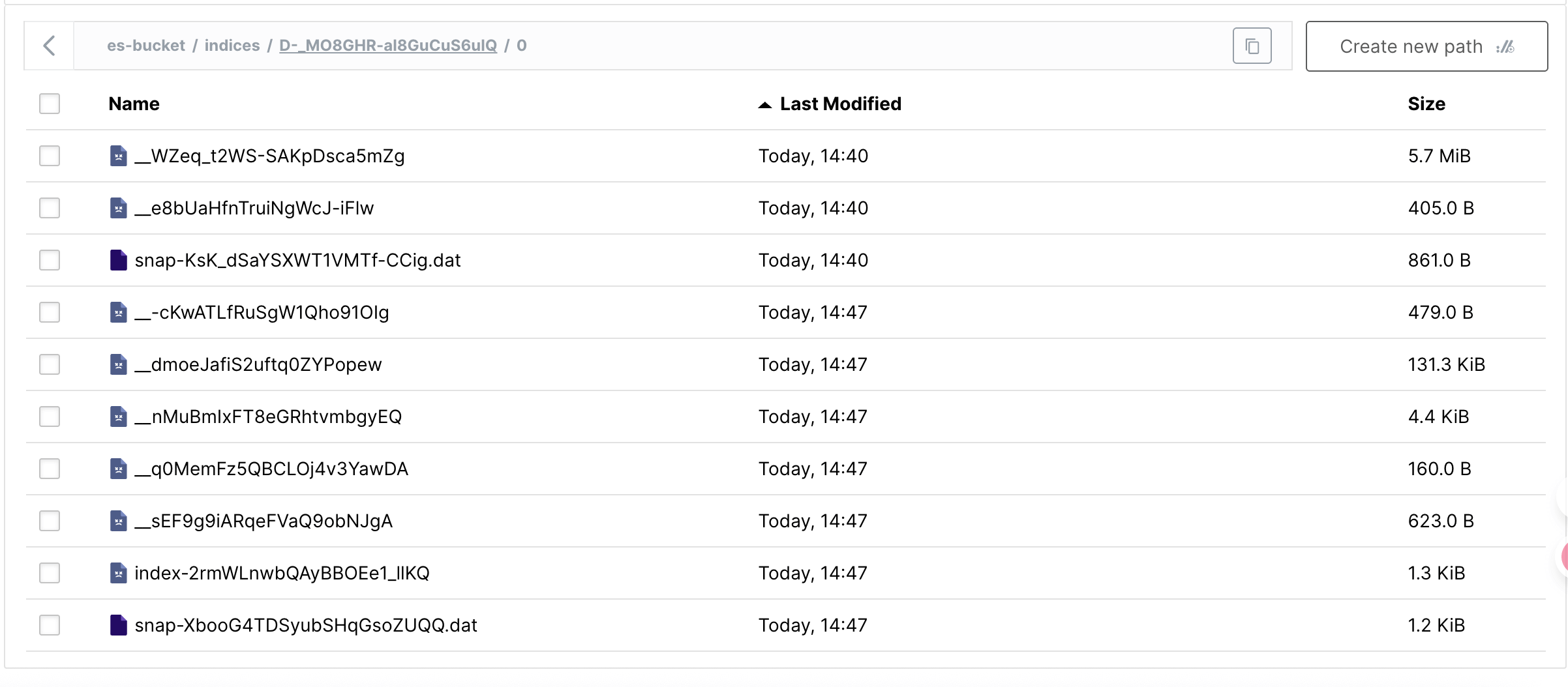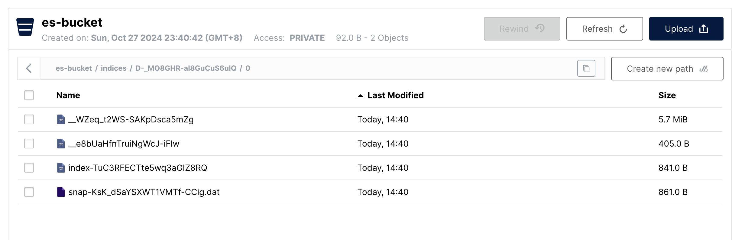 那么在 MinIO 中,可以看到会有一批新增的文件,而第一次备份的文件也在。