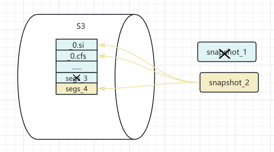 如图所示,要清理 snapshot_1,只需要清理掉 segs_3 对应的文件,至于其他文件则是保留下来的 snapshot_2 需要的。