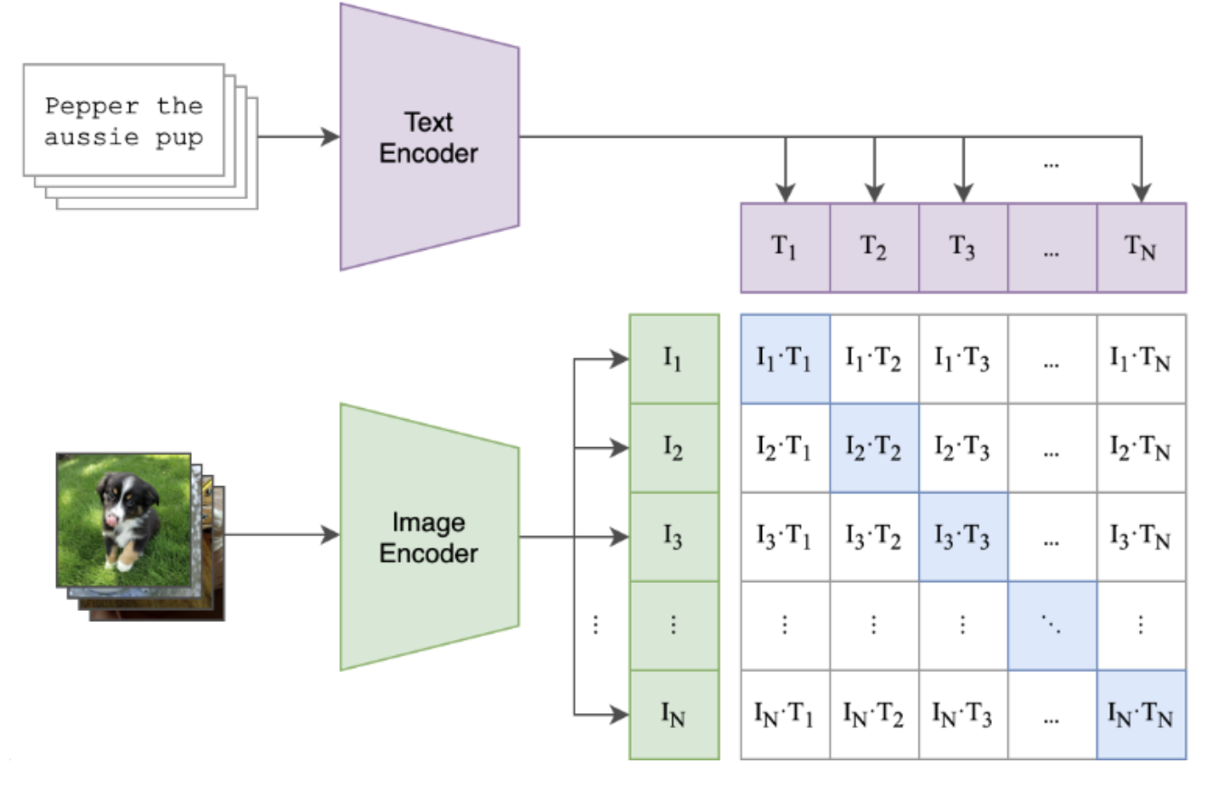 - 训练目标: 最大化 对角线上的相似度, 最小化 非对角线上的相似度。