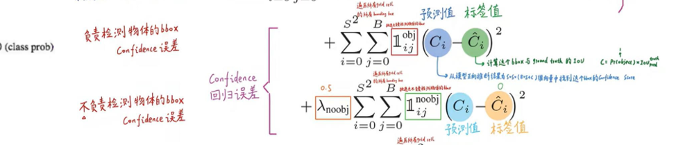 置信度误差公式(简化版):Loss_conf = Σ[(c_pred - c_gt)²](含目标网格) + λ_noobj × Σ[(c_pred - 0)²](无目标网格)