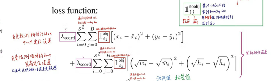 - 仅对 “包含目标的网格” 中的边界框计算位置误差(网格内无目标则位置误差为 0);