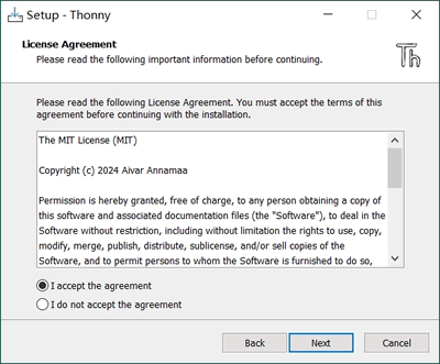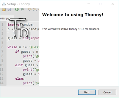 Windows 平台下载网盘中的 thonny-4.1.7.exe 安装程序,双击它启动安装,过程如下: