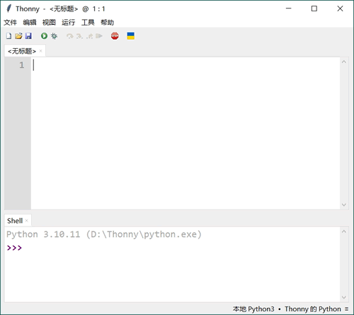 1) 双击桌面上的“Thonny”图标,首次会弹出下图的窗口: