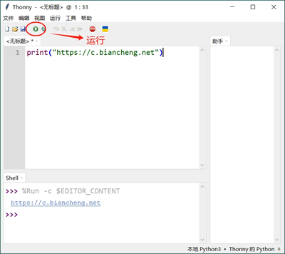 3) 如下图所示,输入一段 Python 程序,点击运行按钮,会看到输出结果: