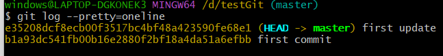 我们也可以使用命令 git log pretty=oneline 命令来使输出内容变得更有可读性,格式更美观