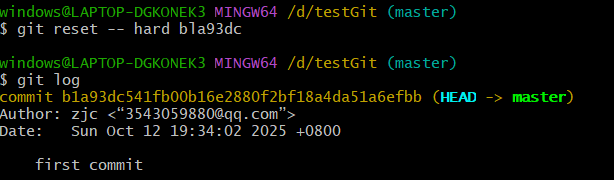 使用git reset --hard 版本号 来实现回退撤销