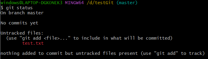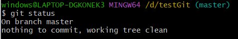 现在我们已经提交了一个test.txt文件了,下面可以通过命令git status来查看是否还有文件未提交