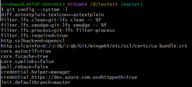 git系统级别对应的配置文件是git安装目录下的 /etc/gitconfig