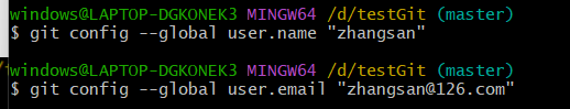 git config --global user.email "zhangsan@126.com"