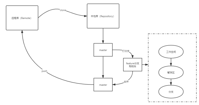 注:用户操作文件之后,文件处于工作区中,通过使用git add . 来把操作文件提交到暂存区,再通过git commit -m "注释"来将暂存区的文件提交到版本库。