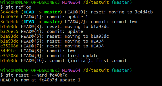 通过git reflog获取到每次操作的版本号