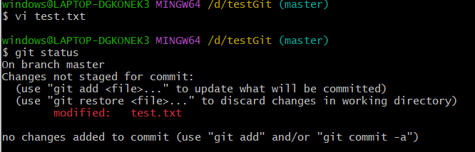 04、修改文件,在文件中加入一行。查看git的状态