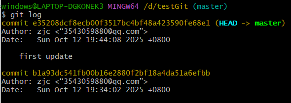 可以通过git log 来查看历史记录