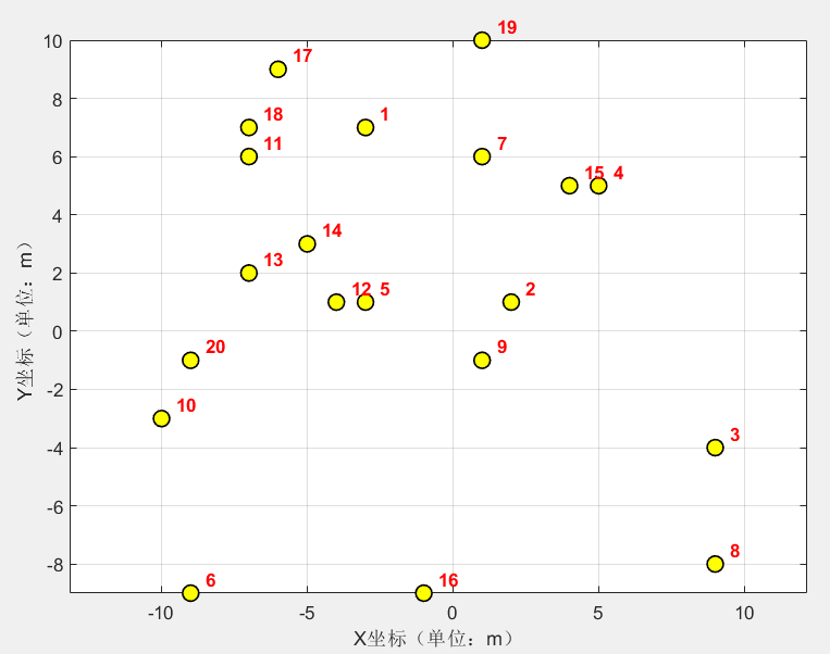 % X: 节点坐标矩阵,格式为[维度×节点数](如2×20表示20个节点的二维坐标)