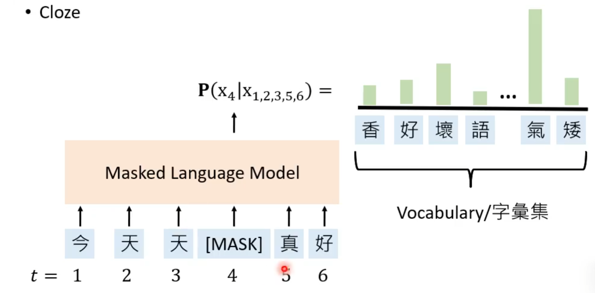 也就是前所学的,遮蔽句中的一个token,让这个模型完成“填空”。