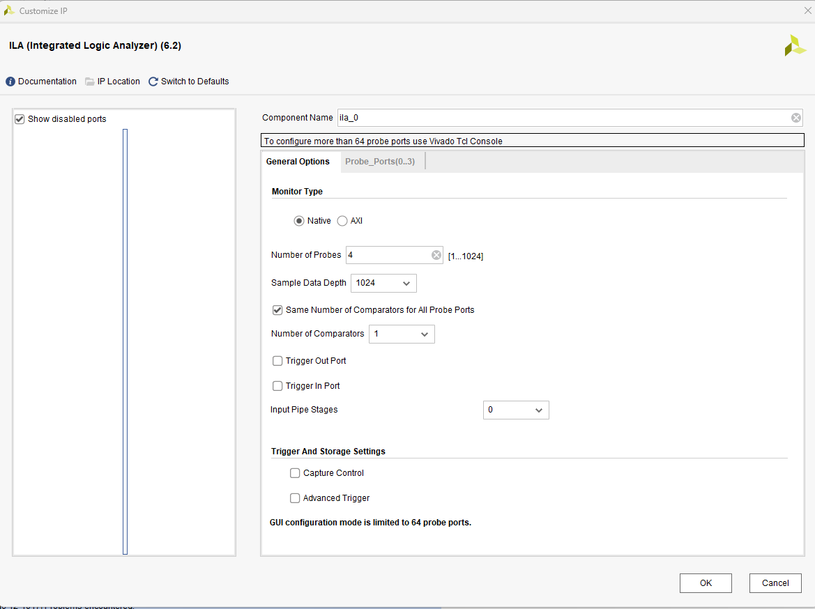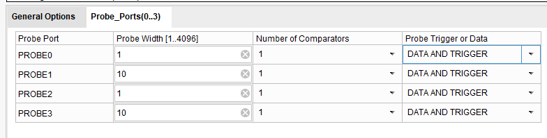 - 描述:设置 ILA 的探针端口数量,用于连接需要监控的信号。