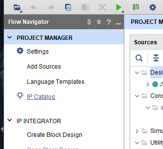 - 在 Vivado 的 Flow Navigator(左侧栏)中,点击 IP Catalog(通常位于 Project Manager 部分)。