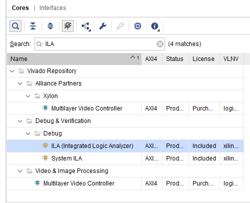 同样的,点击 IP Catalog,在搜索框中输入 ILA,选择 Integrated Logic Analyzer。