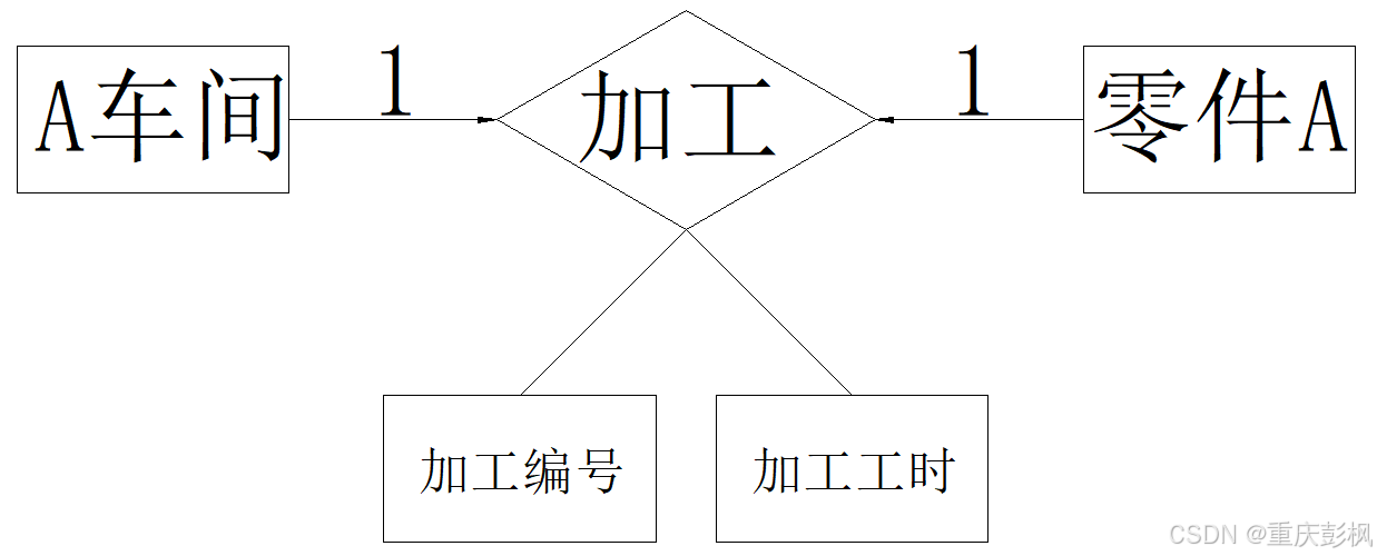 A车间和零件A是1:1的关系,如果有人问加工表里没体现A车间和零件A啊,因为他们是1:1的关系(这里是n:1也是可以的,为了简化理解写成1:1),所以在"A车间"里作为表是可以略去---参考"表的拆分",为了适应可能的变化,表1改为以下形式