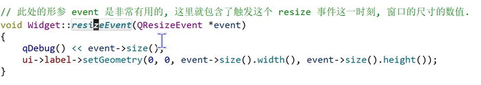 在鼠标拖动窗口尺寸的 过程中 这个函数就会被反复调用执行,每次触发一个 resizeEvent 事件都会调用一次对应的虚函数。