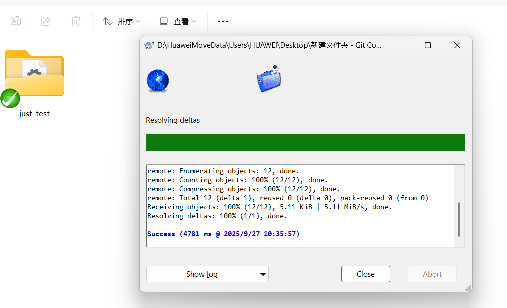 3. 克隆下来的just_test就是工作区(我们写代码的一个工作目录),.git就是本地git仓库,工作区中的代码不是全部都要上传到仓库中。
