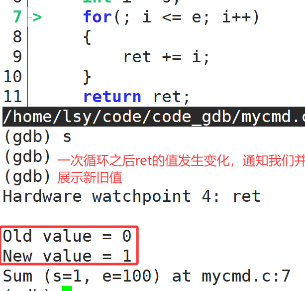 执行时监视⼀个变量或表达式的值。如果监视的表达式在程序运行期间 值发生变化,gdb 会暂停程序的执行,并通知使用者。