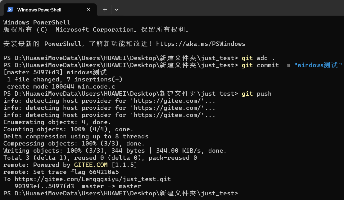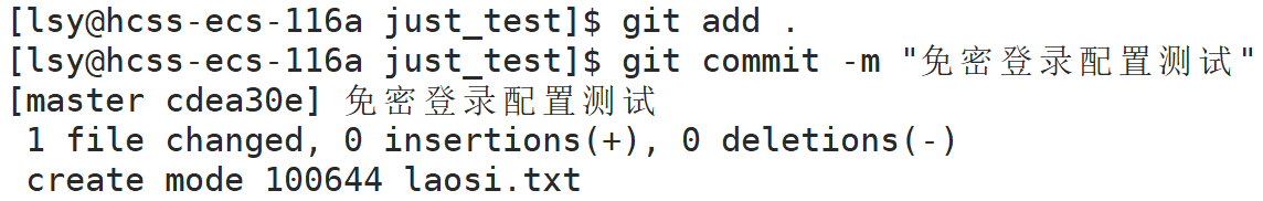 [lsy@hcss-ecs-116a just_test]$ git commit -m "Linux测试"