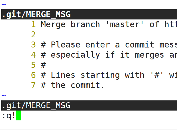 git pull之后不知道跳到哪去了没关系,直接回车后强制退出。