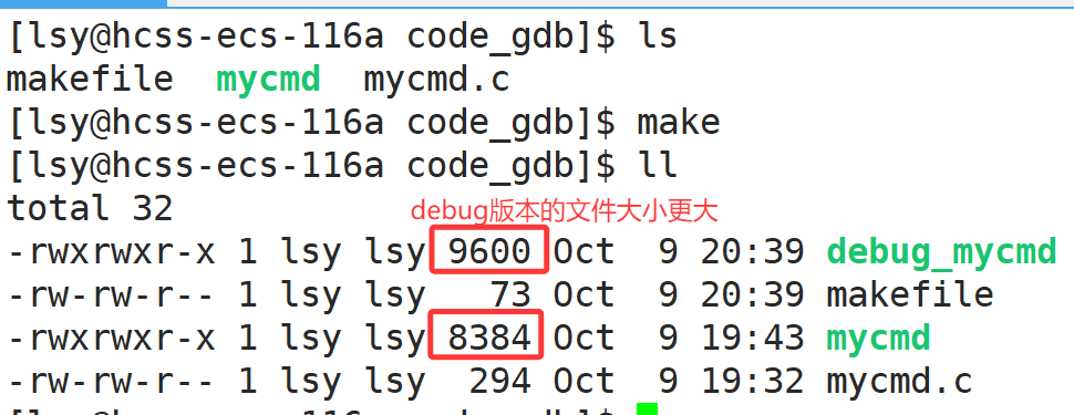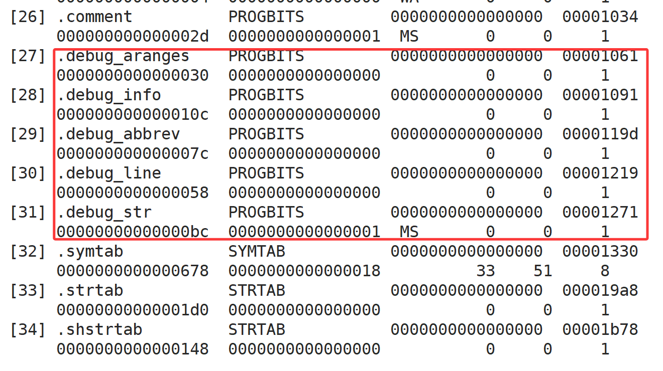 gcc/g++在编译时带上-g选项,我们再编译一个debug版本做对比。