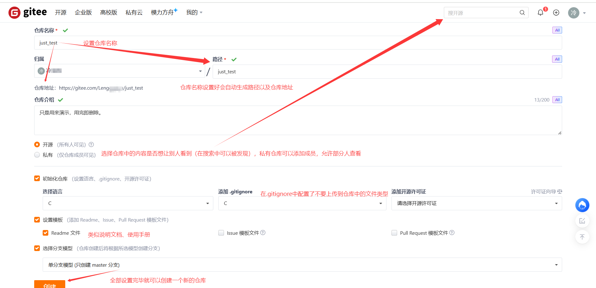 2. 创建一个远端仓库
