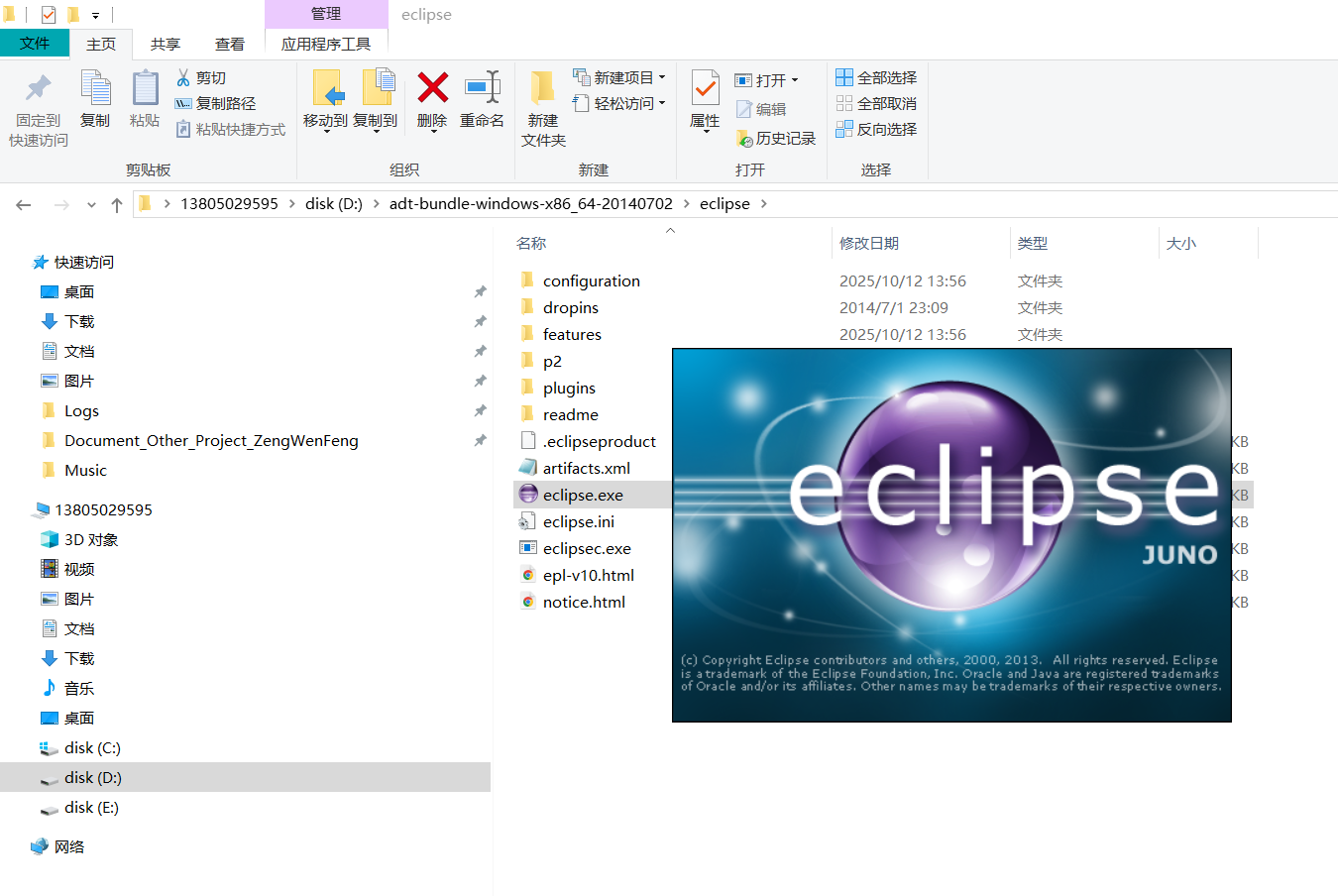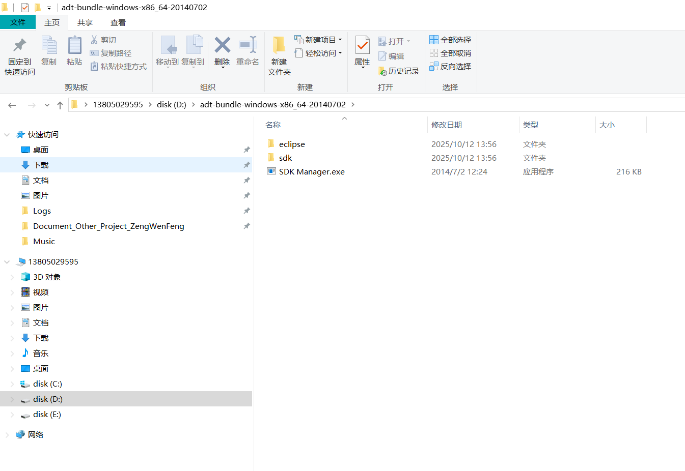 以 adt-bundle-windows-x86_64-20140702 为例解压缩即可用