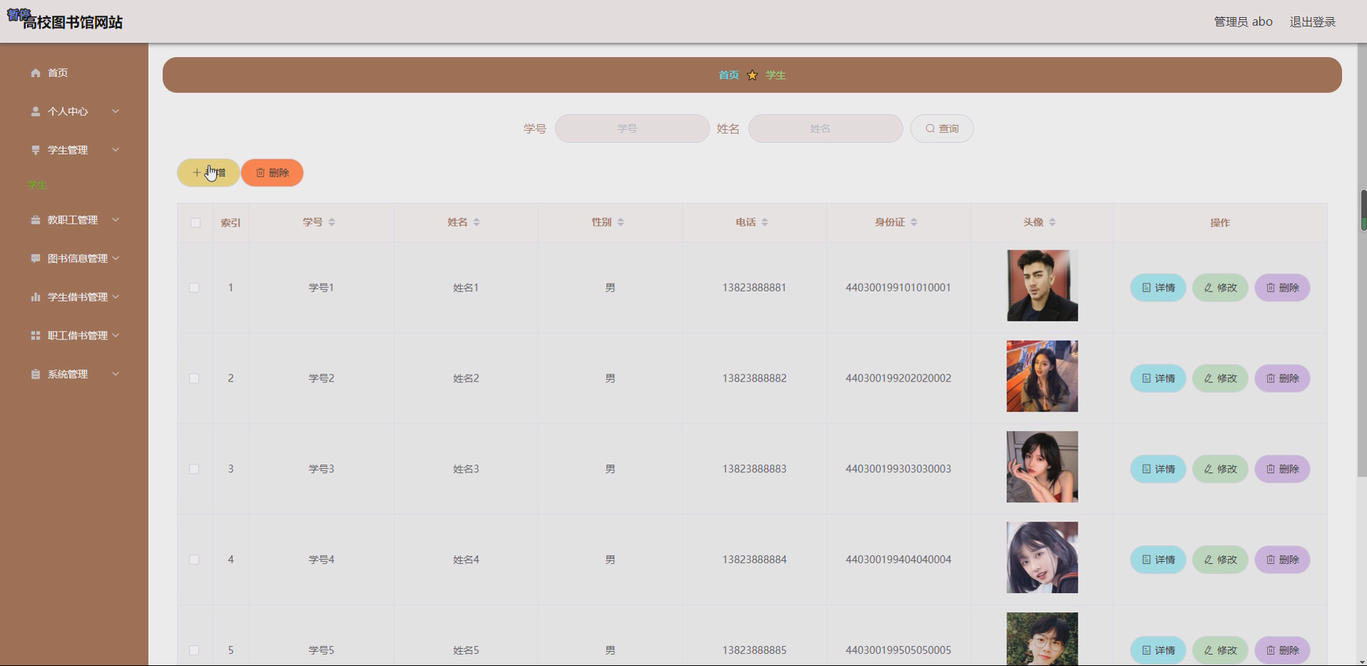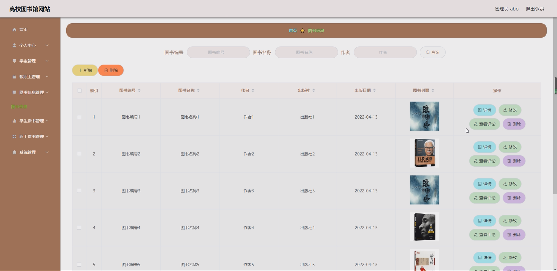 系统前端采用 Bootstrap 框架实现响应式设计,页面简洁直观,师生通过校园账号即可登录使用,无需复杂培训;管理员操作界面设计清晰,功能按钮分类明确,符合图书馆管理员的操作习惯。