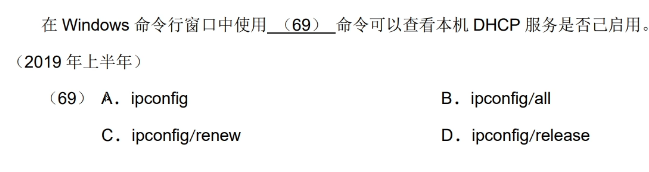 这题可能会在A和B中犹豫不决,因为这都是查看服务的命令,但完全可以选权力更大的,ipconfig/all可以查看所有的本机服务状态。本题的正确答案也的确是B