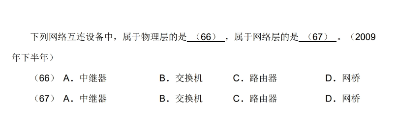 由上述可知,这题的答案是A,C。为了方便记忆,那么在考试的时候,除了路由器是属于网络层,其他只要是什么器的一律都是物理层。