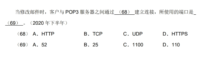 电子邮件系统中SMTP和POP3都是使用的TCP协议建立连接;其中,POP3使用的端口号是110,SMTP使用的端口号是25