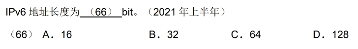 新推出的IPv6,最大能表示2^128,一共是128个比特位,所以选D