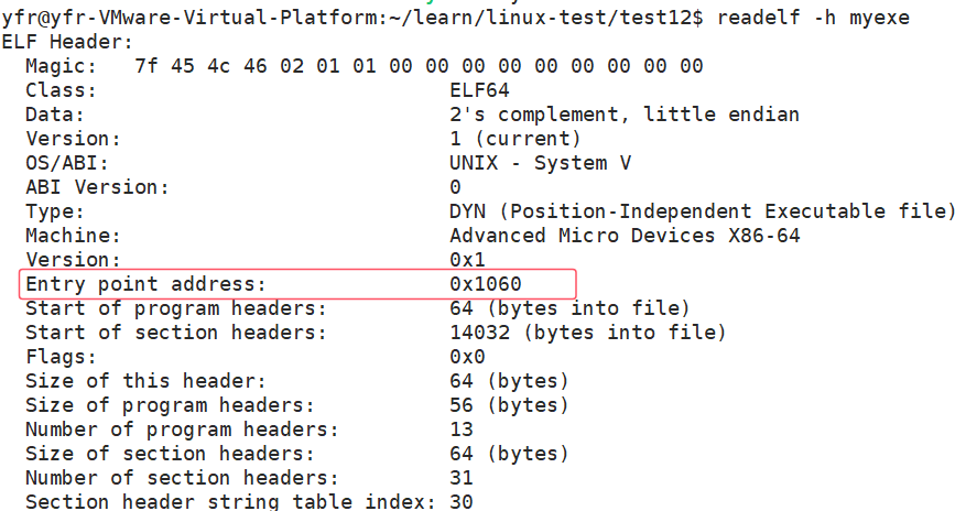 ELF在被编译好之后,会把自己程序的入口地址记录在“Entry point address”字段里: