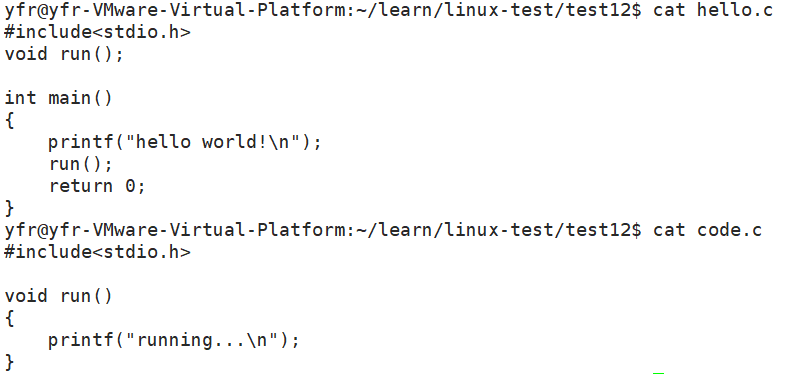 我们可以看到这里的main函数里用到了run方法,但是run的具体实现在另一个.c文件中,我们把这两个文件编译一下: