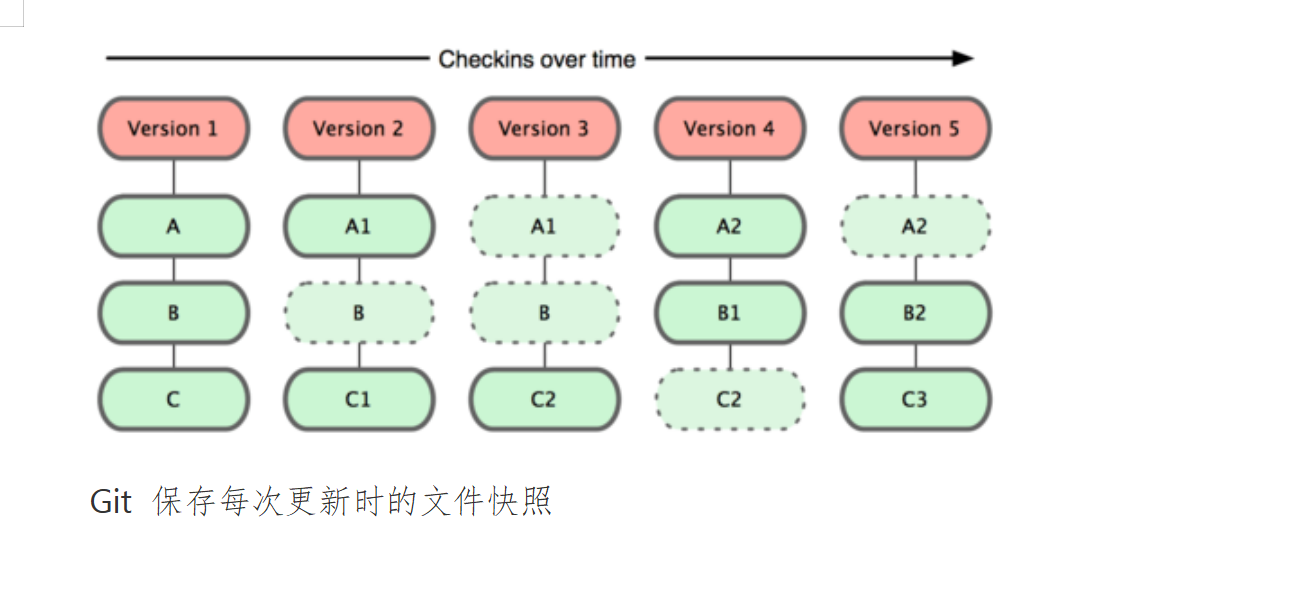 但是git直接快照,每次提交更新时,它会纵览一遍所有文件的指纹信息并对文件作一快照,然后保存一个指向这次快照的索引。为提高性能,若文件没有变化,Git 不会再次保存,而只对上次保存的快照作一链接。对版本一进行操作增加某行,删除某行。找到版本二的内容,先链接版本一没有改变的部分。版本二,是完整的版本。