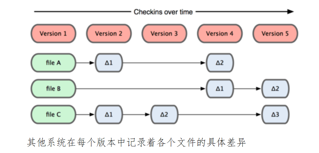 这类系统(CVS,Subversion,Perforce,Bazaar 等等)每次记录有哪些文件作了更新,以及都更新了哪些行的什么内容。对版本一进行操作,增加某行,删除某行。再找到版本二,需要一步一步的计算,最终才能获得。